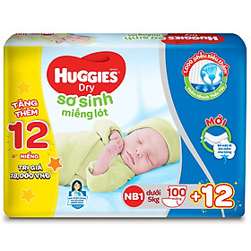 Miếng Lót Sơ Sinh Huggies Dry Newborn 1-100 (100 Miếng)+ Tặng 12 miếng