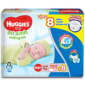 Miếng Lót Sơ Sinh Huggies Dry Newborn 1-100 (100 Miếng) - Tặng 8 miếng