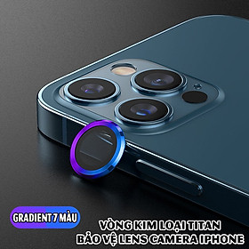 Tặng hộp đựng lens cao cấp - Vòng kim loại titan bảo vệ lens camera dành cho điện thoại iphone 11 / iphone 12 - Xanh Gradient