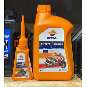 Repsol Scooter 5W40 1L + Nhớt hộp số Repsol Gear Oil 80W90 120ml ( bộ nhớt dùng cho xe tay ga cao cấp tổng hợp)