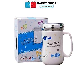 Ly Sứ Uống Trà , Cà Phê 400ml Nắp Trắng Kèm Hộp