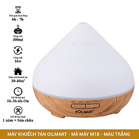 Đặc tính sản phẩm Máy Khuếch Tán Tinh Dầu Oilmart Nụ Trắng M18 - 16W 300ml