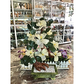 Cây Hoa Trà phong thủy đá bạch ngọc - Cao 59 cm