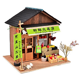 Diy Nhà Búp Bê Thu Nhỏ W/Nội Thất Bộ Vintage Trái Cây Tươi Shop Trẻ Em Quà Tặng