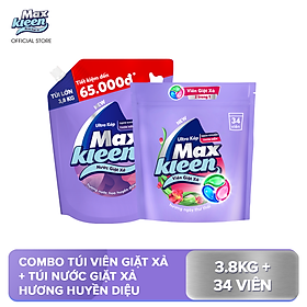Combo 2 Túi Viên Giặt Xả MaxKleen + 1 Túi Giặt Xả 3.6kg/3.8kg