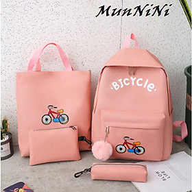 Balo nữ combo 4 món đi học thời trang sinh viên học sinh ba lô set cặp thời trang xe đạp- Munnini